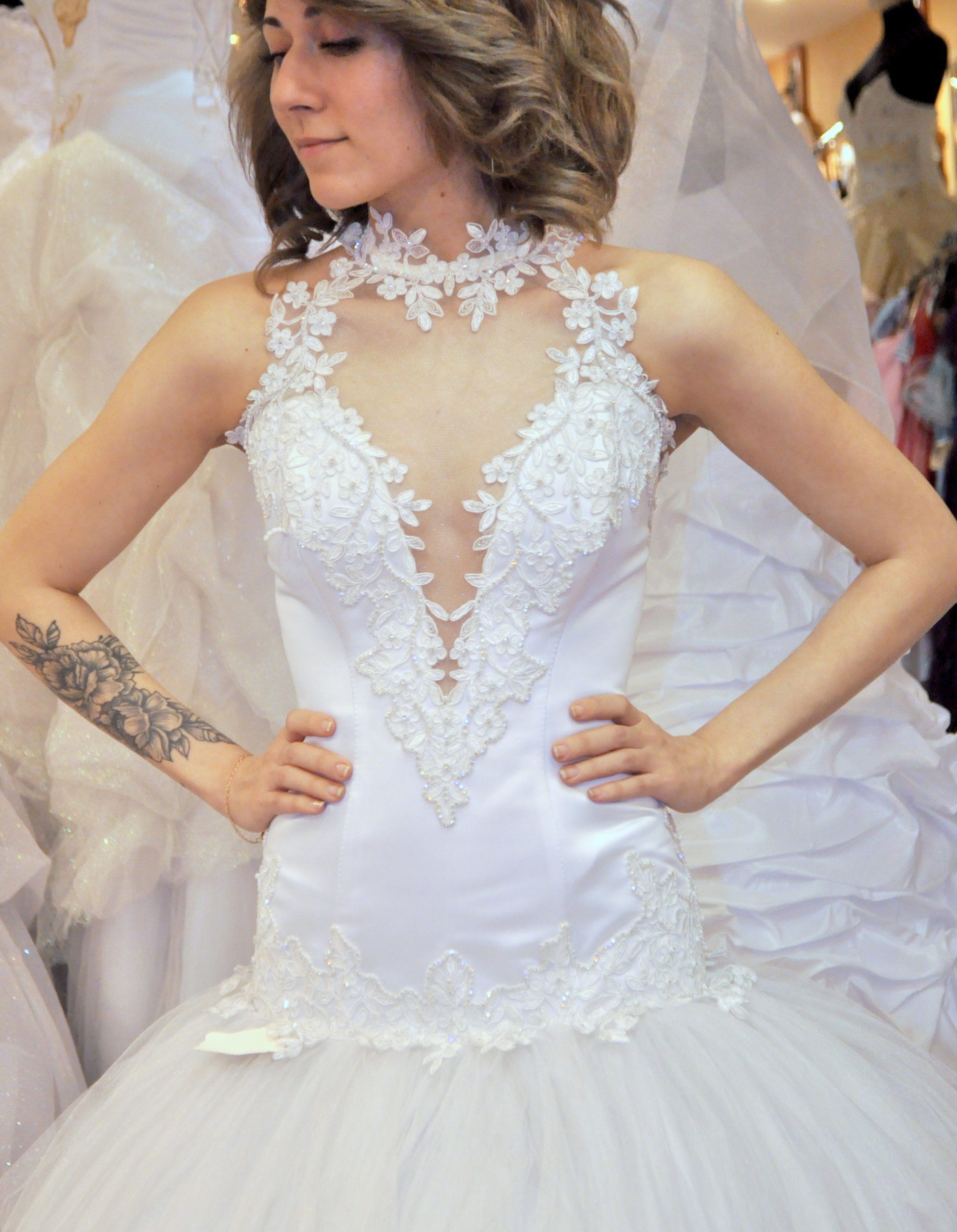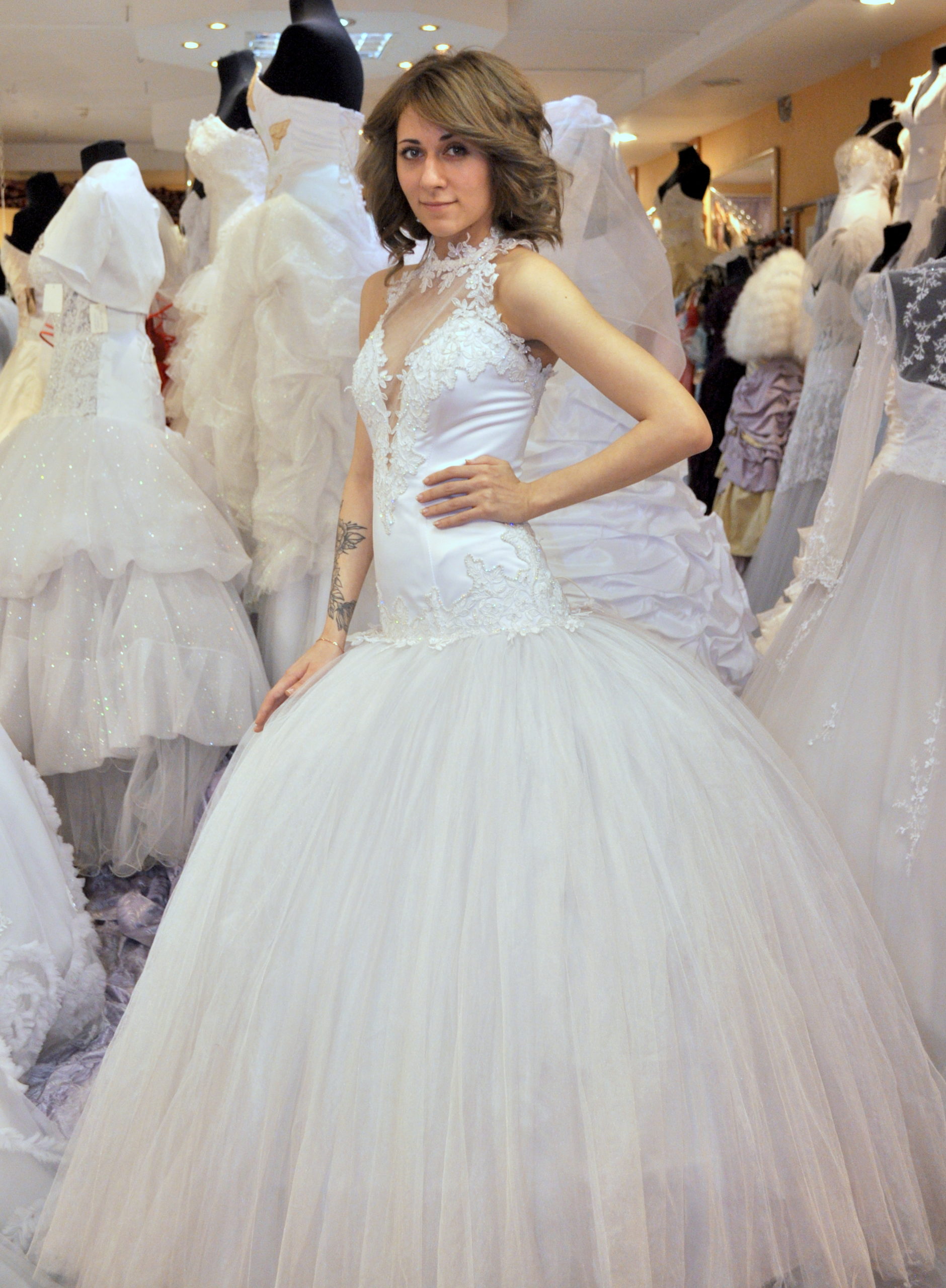 Купить в WhatsUpБелое свадебное платье с заниженной талией.